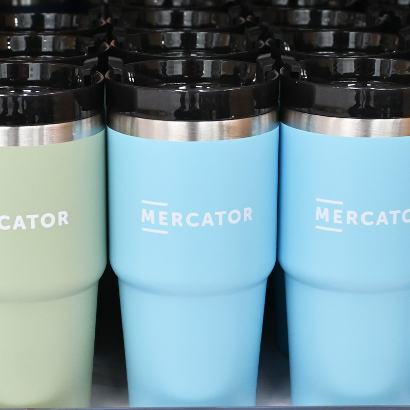 ผลงานกระบอกน้ำ สกรีนโลโก้ Brands of TCM Corporation PLC.