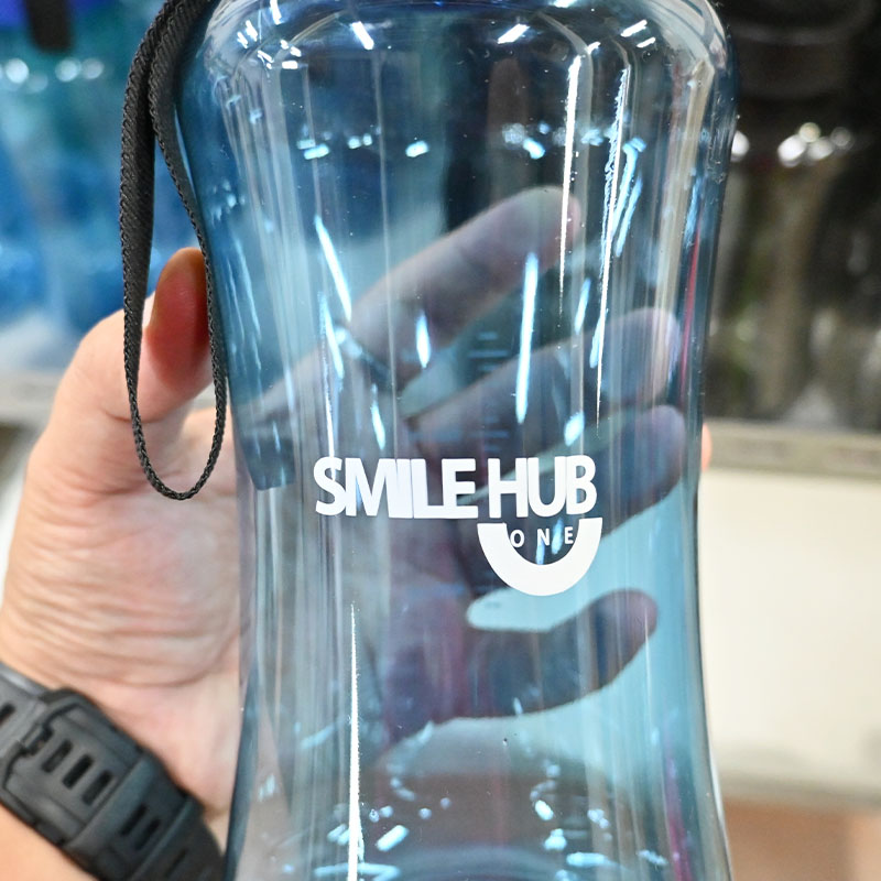 ผลงานกระบอกน้ำ สกรีนโลโก้ SMILE HUB