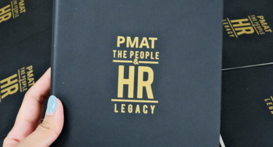 ผลงานสมุดโน้ต สกรีนโลโก้ PMAT THE PEOPLE HR LEGACY