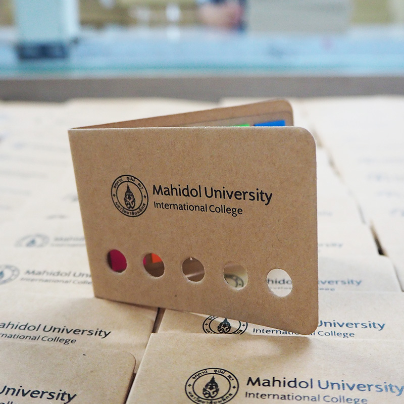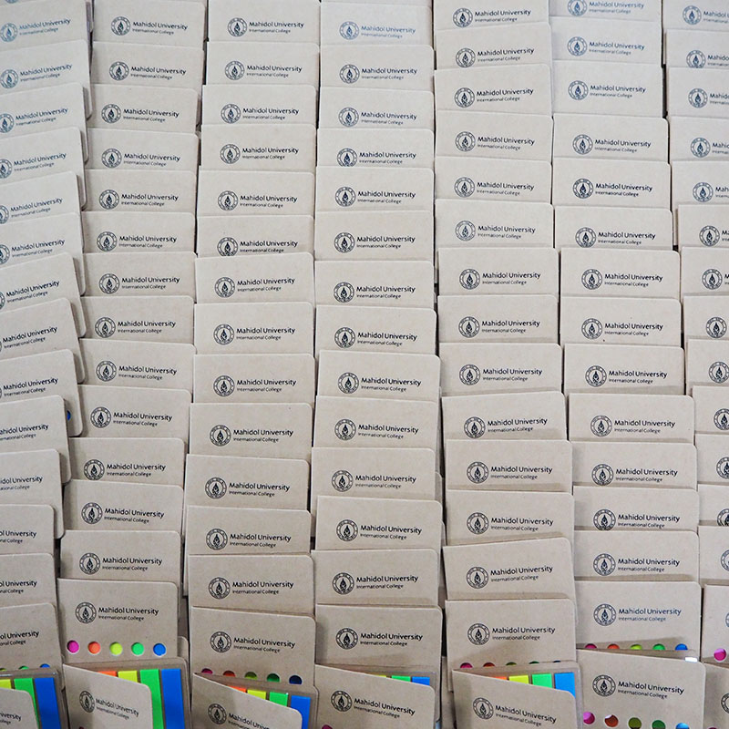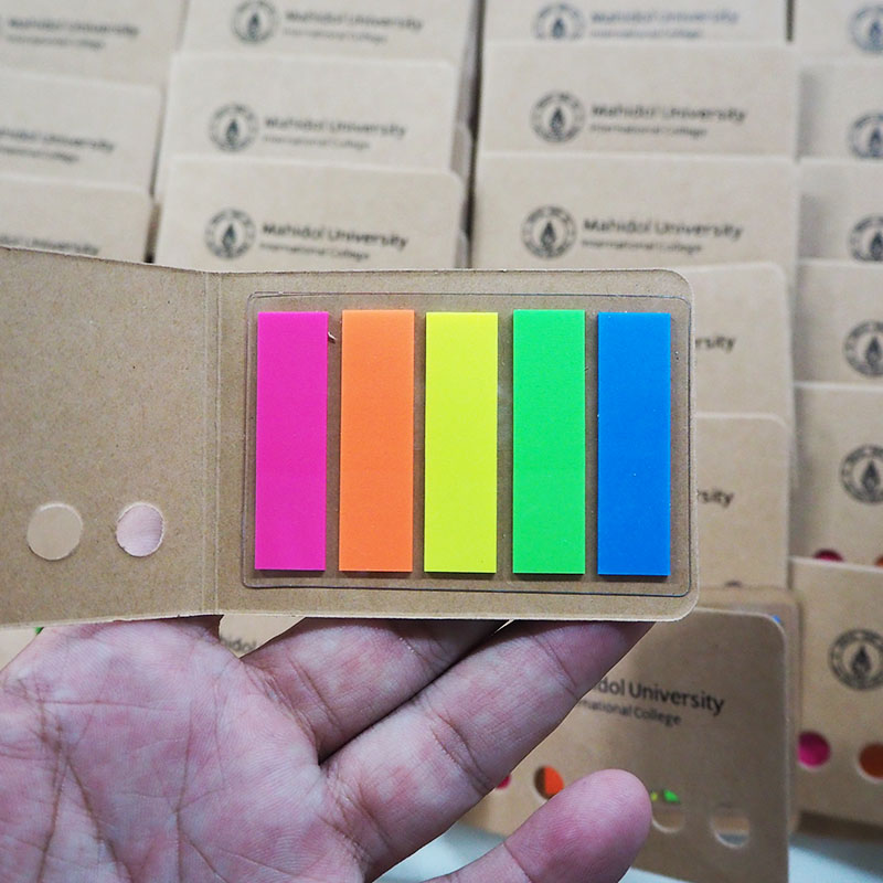 ผลงานสมุดโพสต์อิท สกรีนโลโก้ Mahidol University