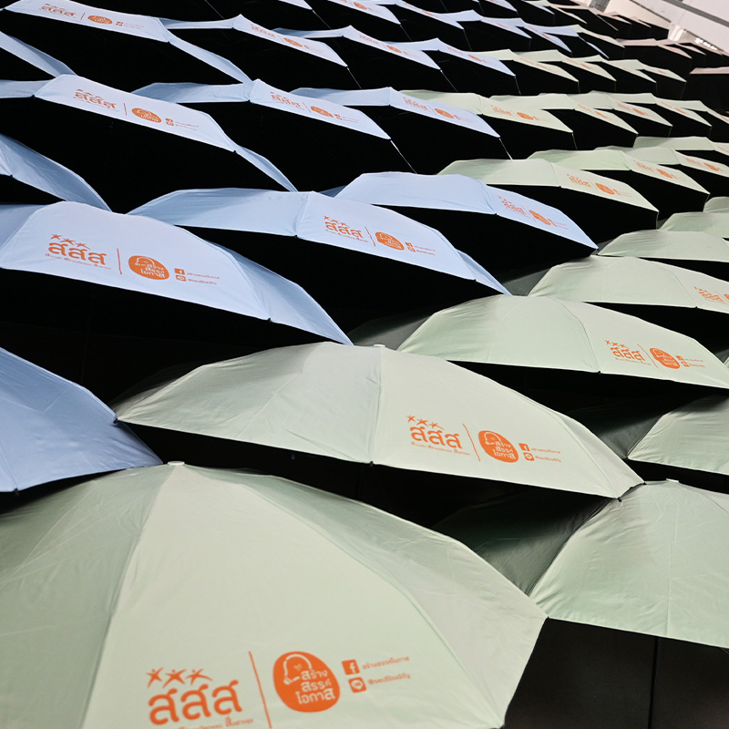 มีสินค้าให้เลือกหลากหลาย กระบอกน้ำ ร่ม ถุงผ้า สมุดโน้ต ปากกา แฟลชไดร์ฟ Power bank และสินค้าอื่น ๆ อีกมากมาย