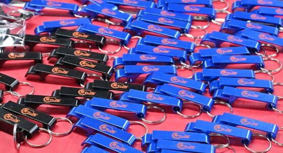 มีสินค้าให้เลือกหลากหลาย กระบอกน้ำ ร่ม ถุงผ้า สมุดโน้ต ปากกา แฟลชไดร์ฟ Power bank และสินค้าอื่น ๆ อีกมากมาย