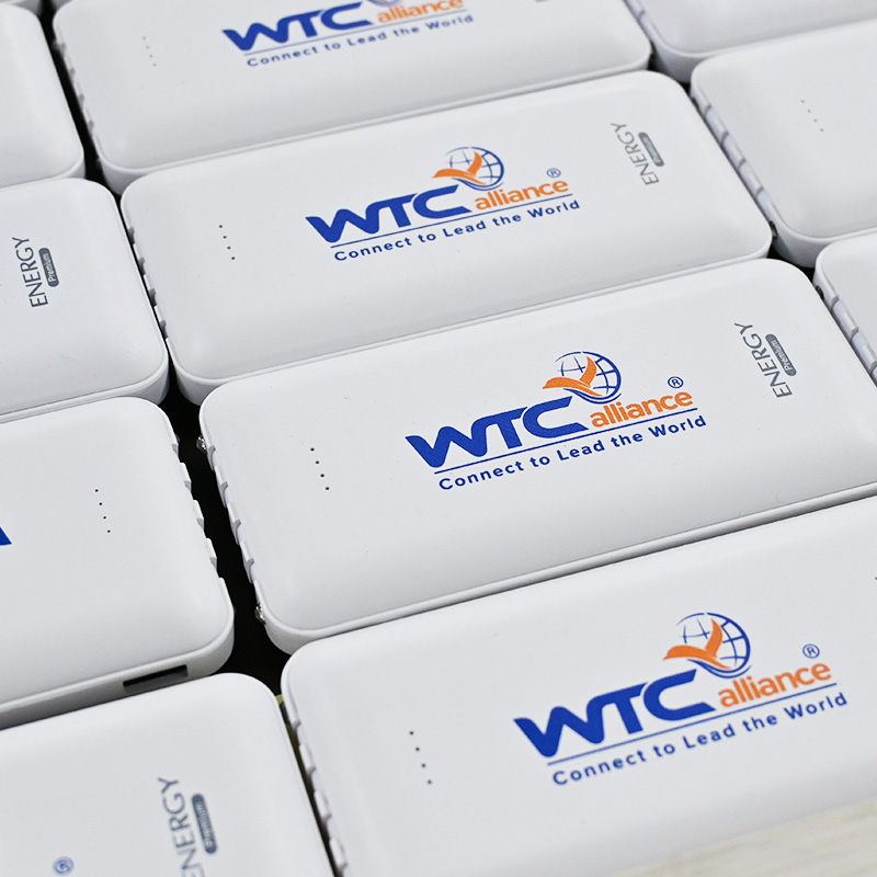 ผลงานพาวเวอร์แบงค์ สกรีนโลโก้ WTC alliance