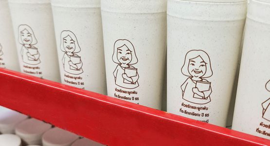 ผลงานของพรีเมี่ยม กระบอกน้ำ สกรีนโลโก้ ด้วยรักและผูกพัน ที่ระลึกเกษียณ ปี65