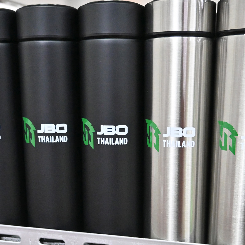 ผลงานกระบอกน้ำ สกรีนโลโก้ JBO THAILAND