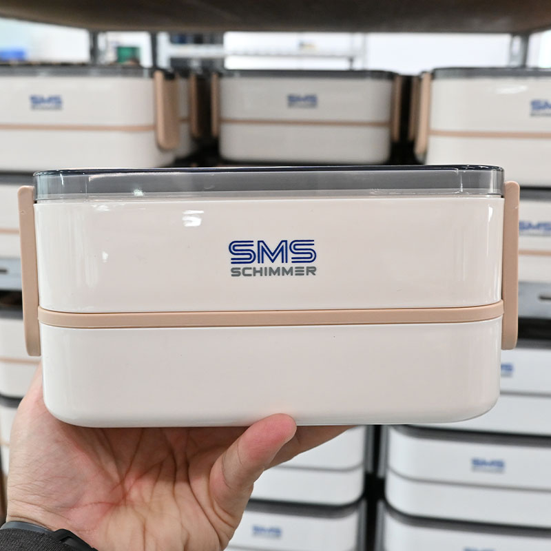 ผลงานกล่องข้าว สกรีนโลโก้ SMS SCHIMMER