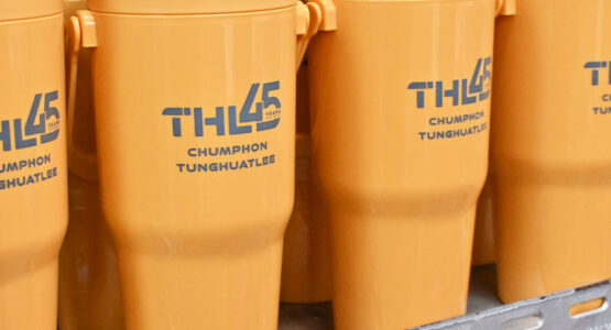ผลงานกระบอกน้ำ สกรีนโลโก้ CHUMPHON TUNGHUATLEE