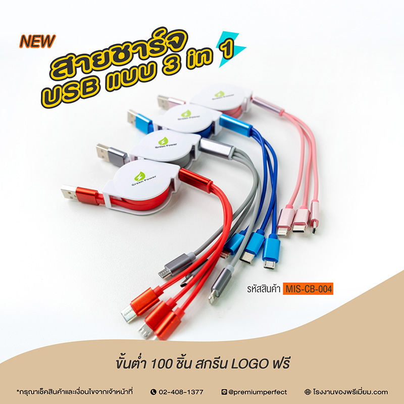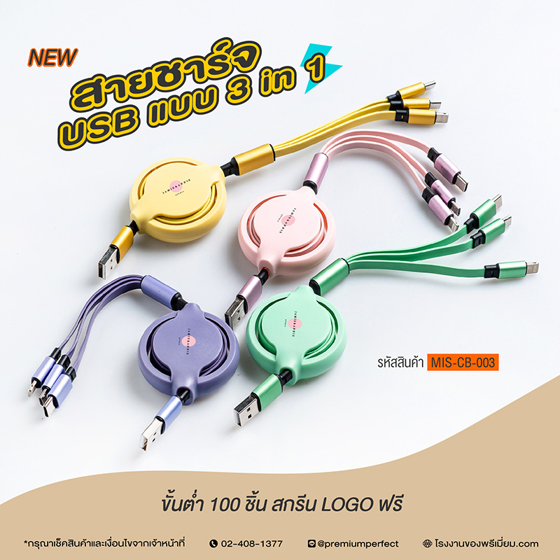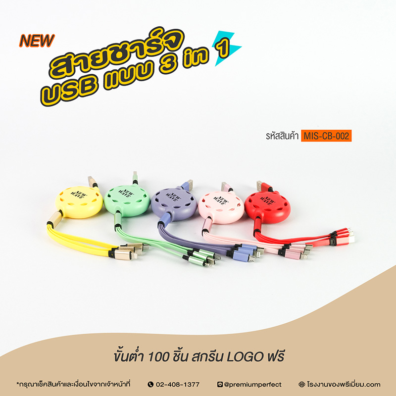 NEW! ของพรีเมี่ยม สายชาร์จ USB แบบ 3 in 1