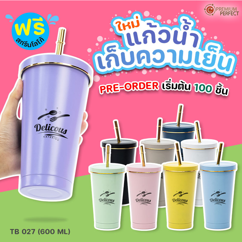 คุณสมบัติ : เก็บอุณหภูมิเย็น 12-24 ชม. / มีหลอดดูด